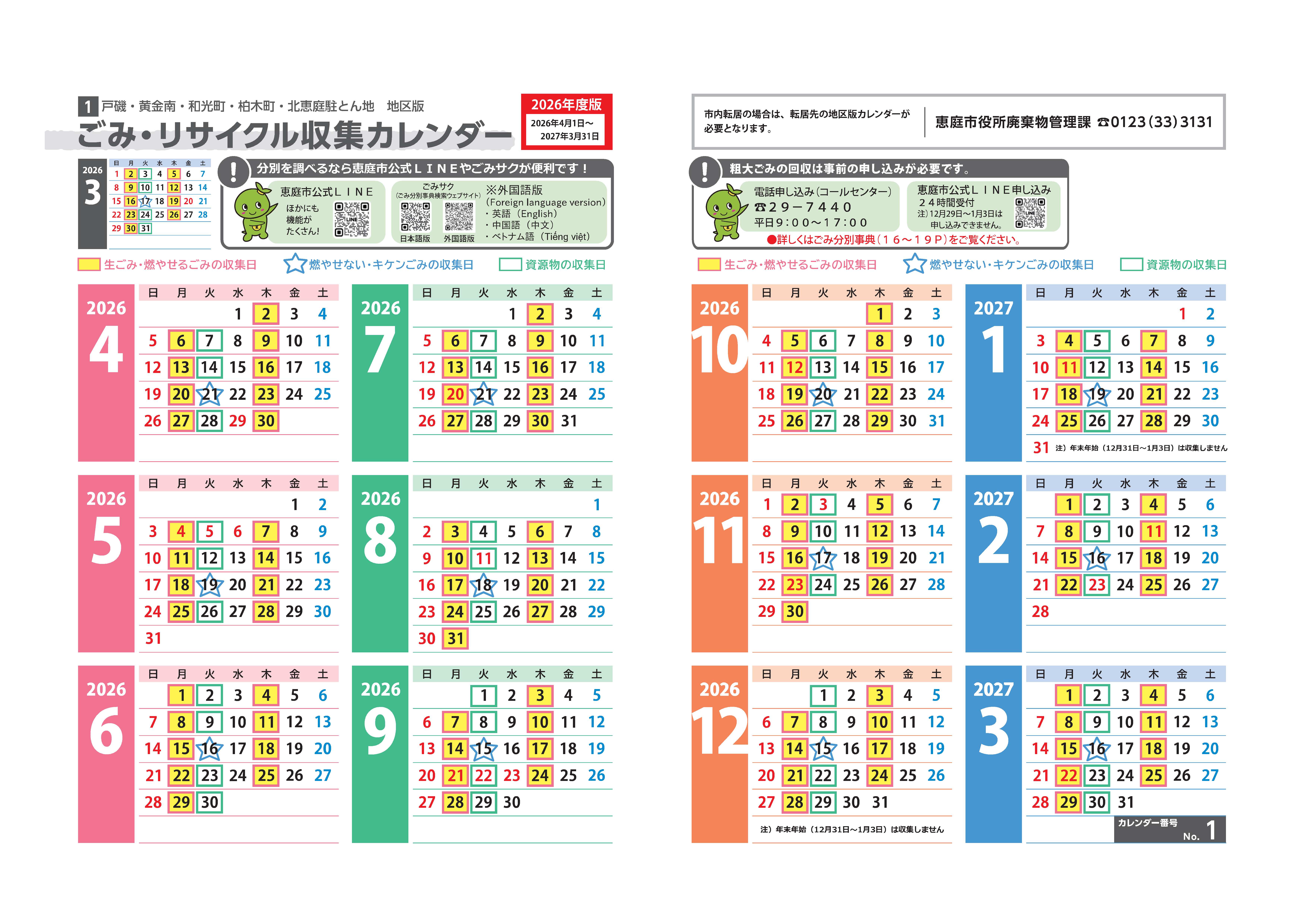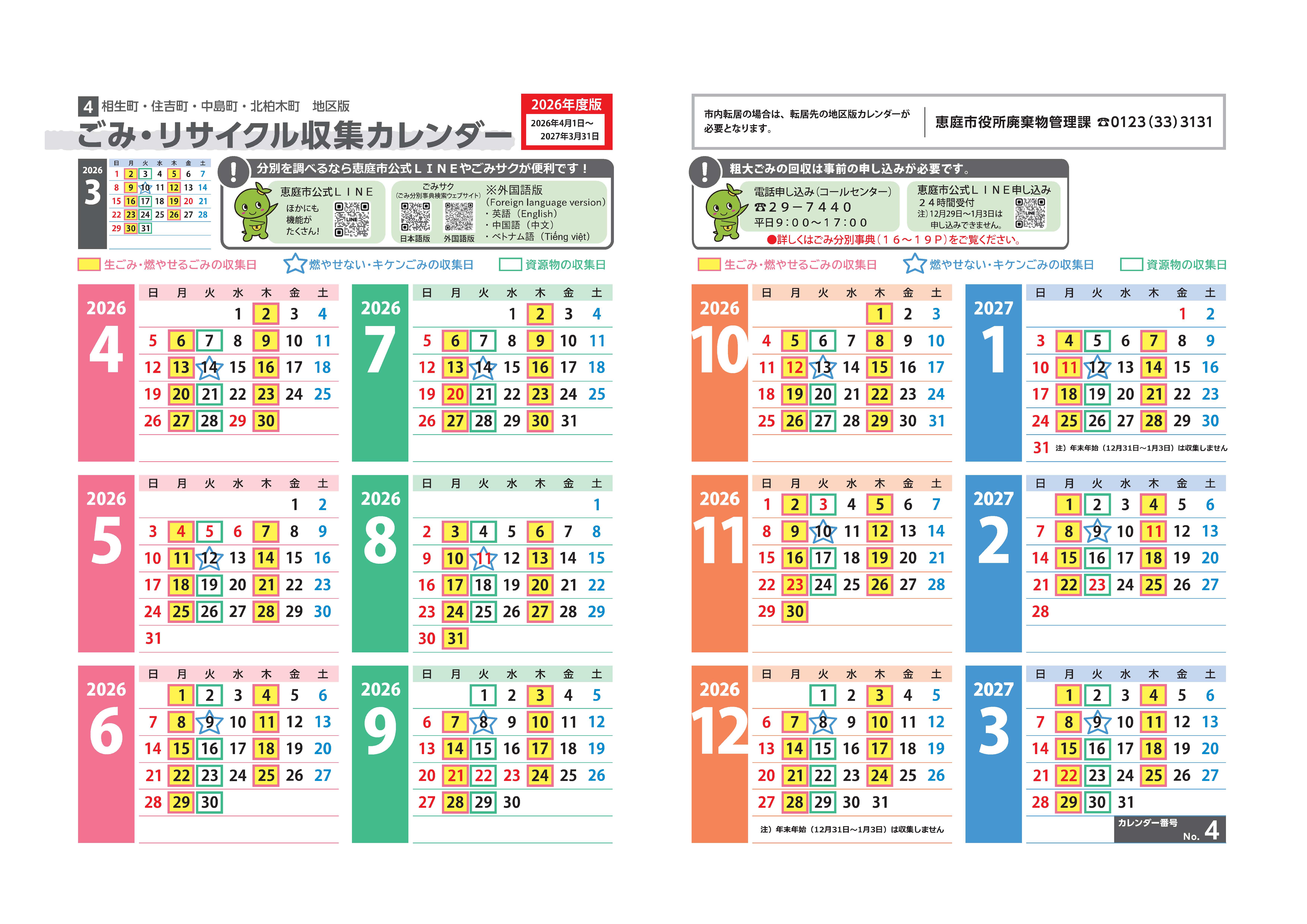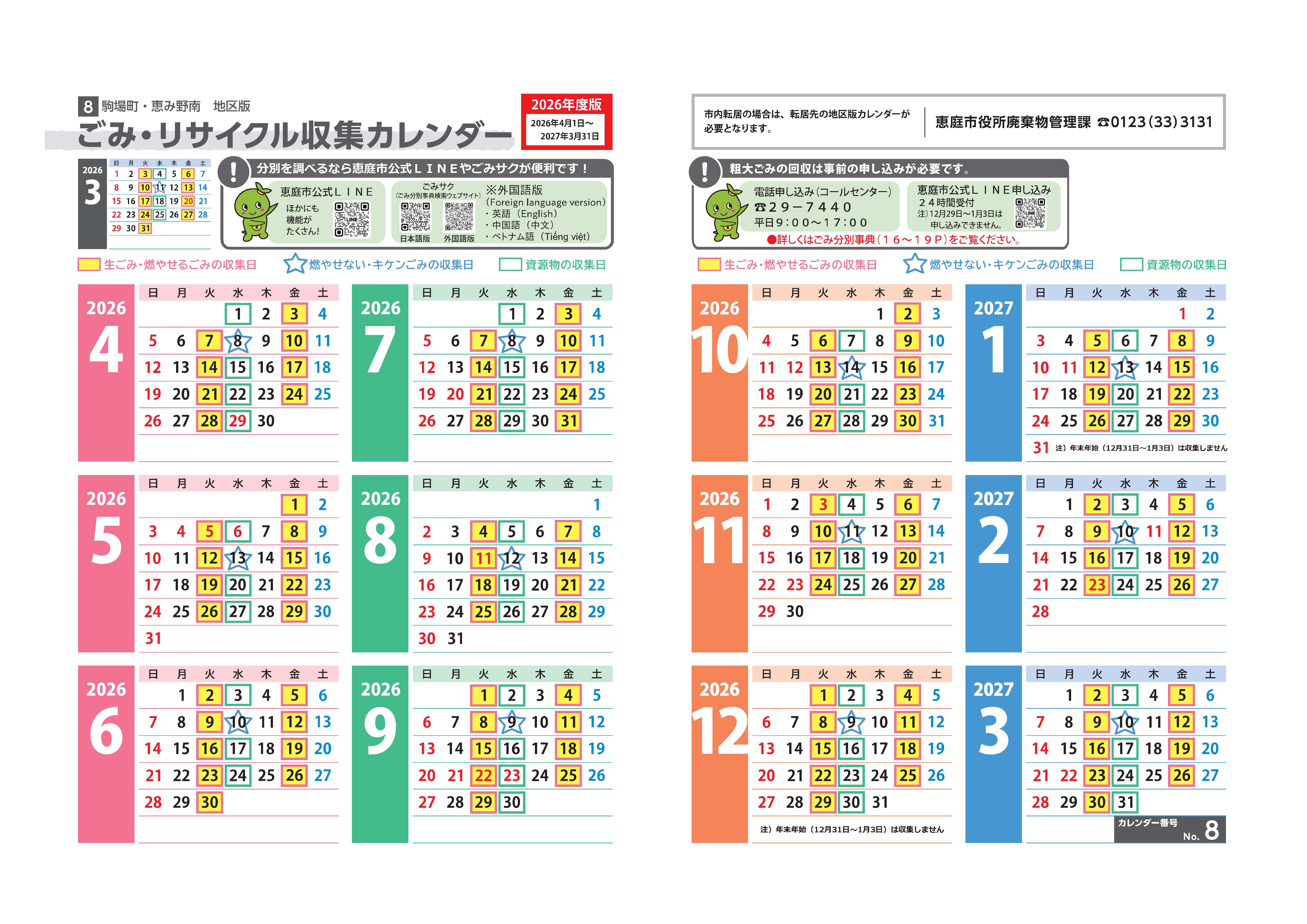 令和8年度(2026年度)版各地区ごみ・リサイクル収集カレンダー