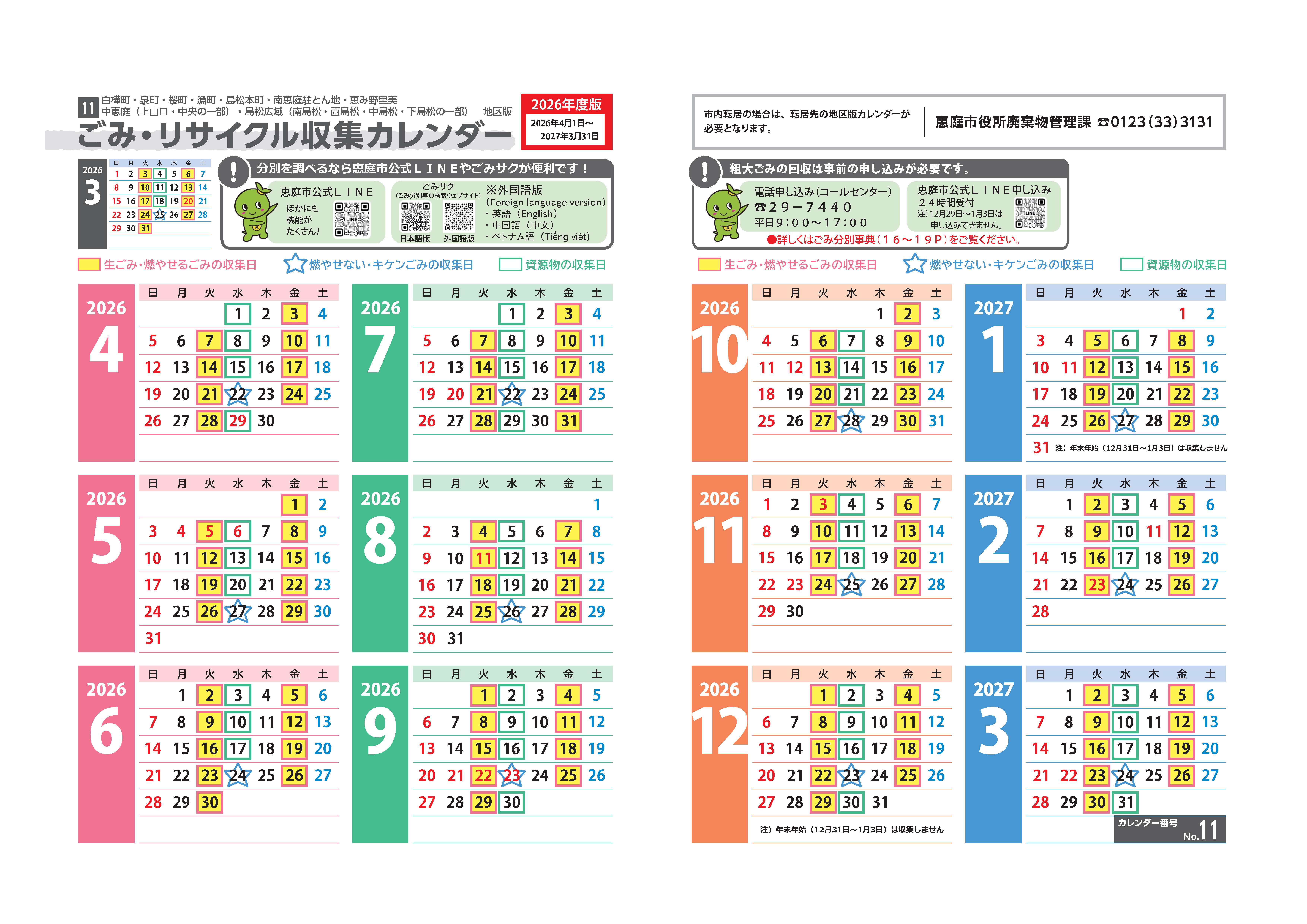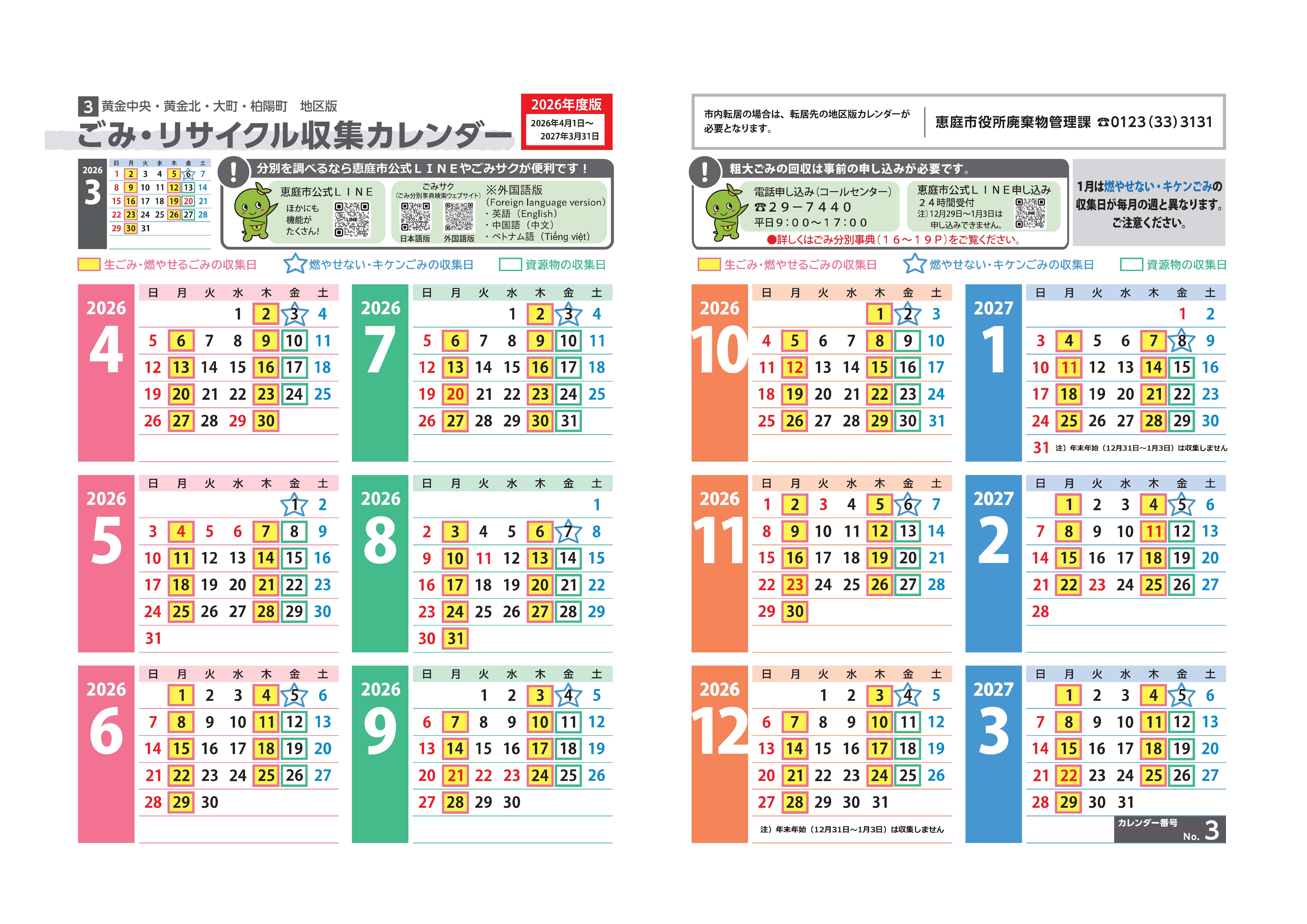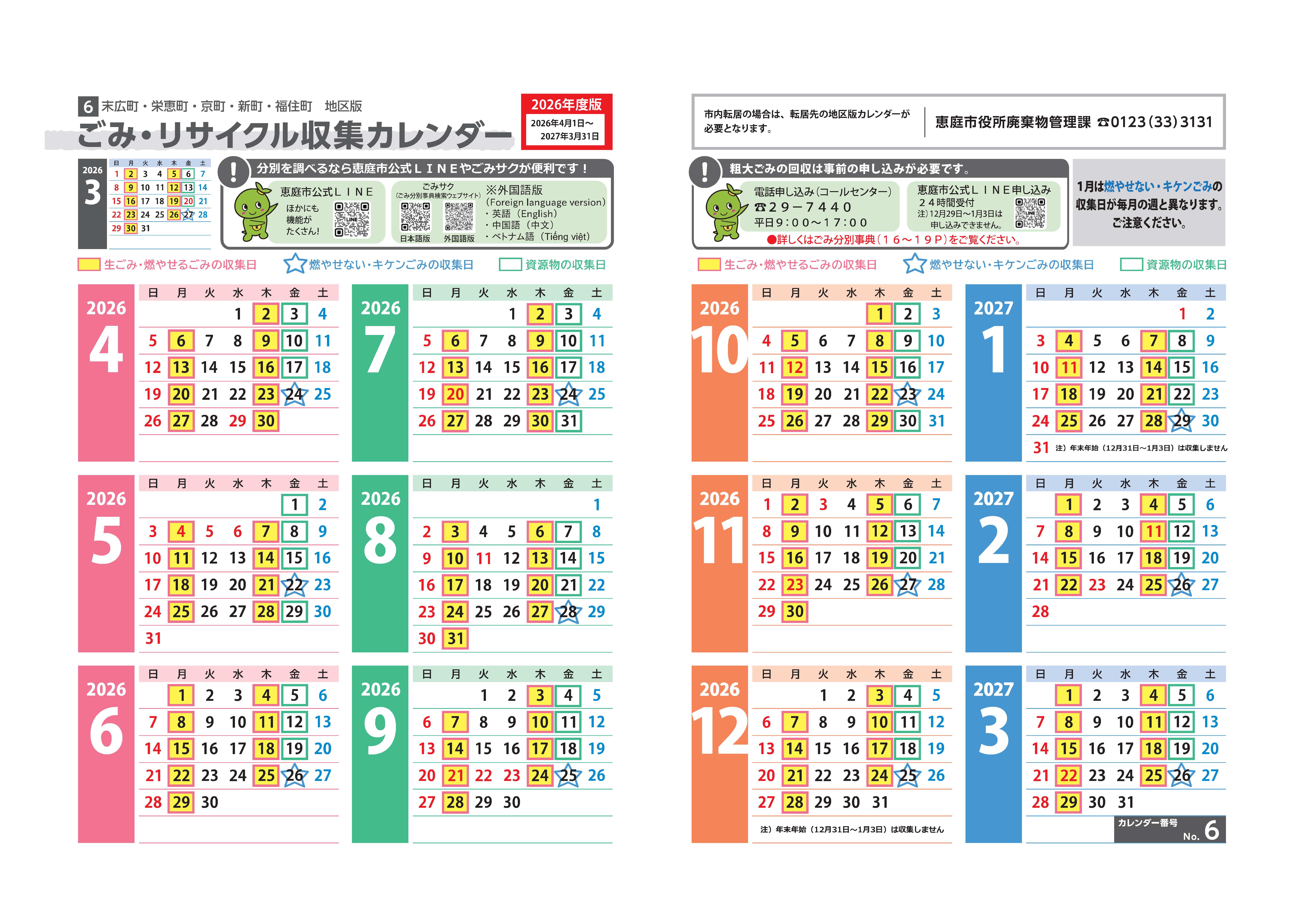 令和8年度(2026年度)版各地区ごみ・リサイクル収集カレンダー