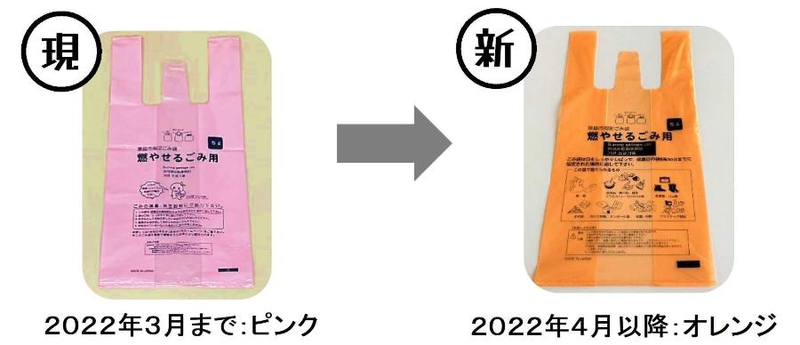 2022年(令和4年)4月から燃やせるごみ袋のデザイン(色)と販売金額が変わります。