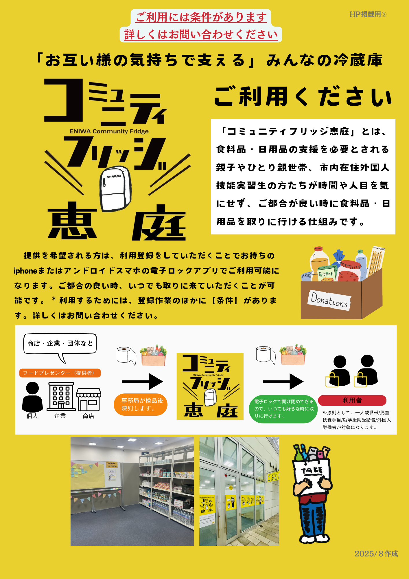 コミュニティフリッジ恵庭(恵み野里美2-15 フレスポ恵み野内 認定NPO法人まちづくりスポット恵み野隣)