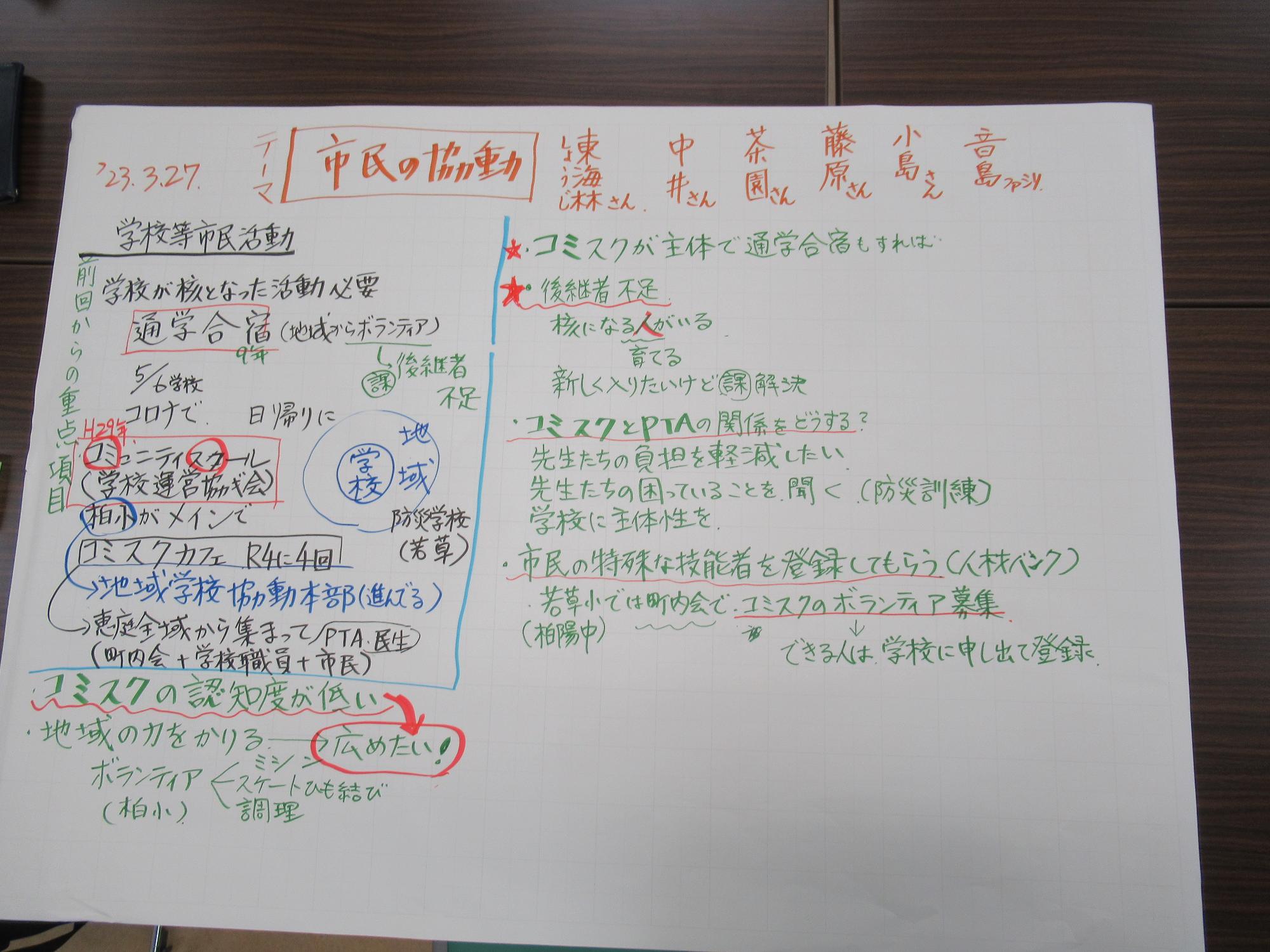 会議で話し合ったことをことをわかりやすくまとめた板書(グラフィック)を作成していますので、ご覧ください。